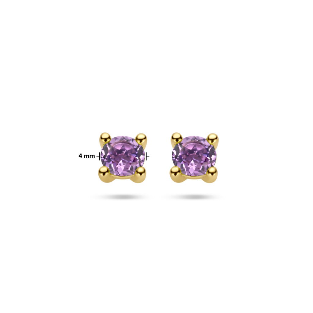14k Geelgouden oorknoppen uitgevoerd met amethist.
