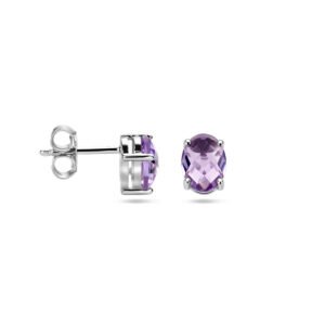 Gerhodineerd 925 zilveren oorknoppen uitgevoerd met amthist. De steen heeft een afmeting van 8x6mm.