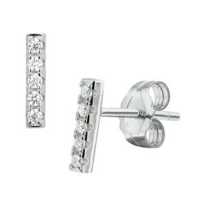 Gerhodineerd zilveren oorknoppen met een balkje en zirkonia.