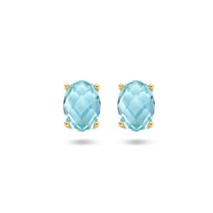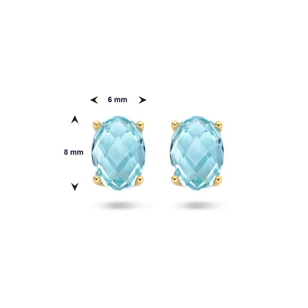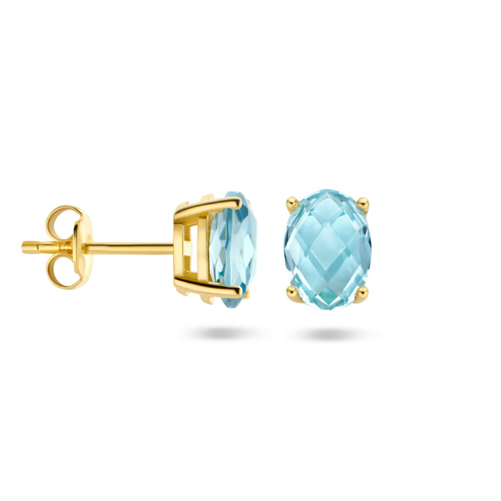 14k Geelgouden oorknoppen uitgevoerd met schitterende sky blue topaas.