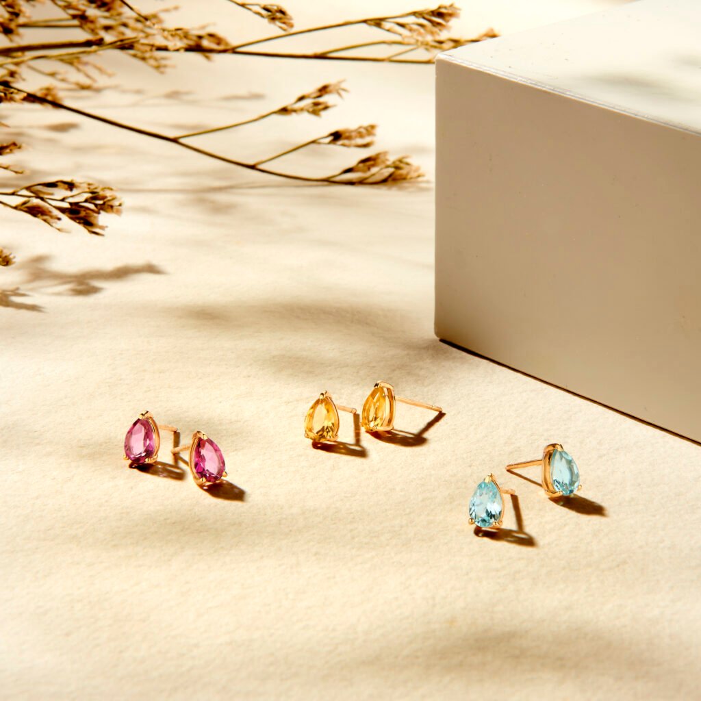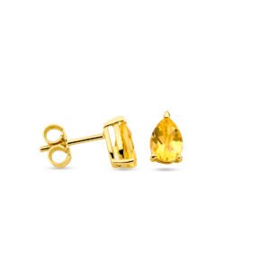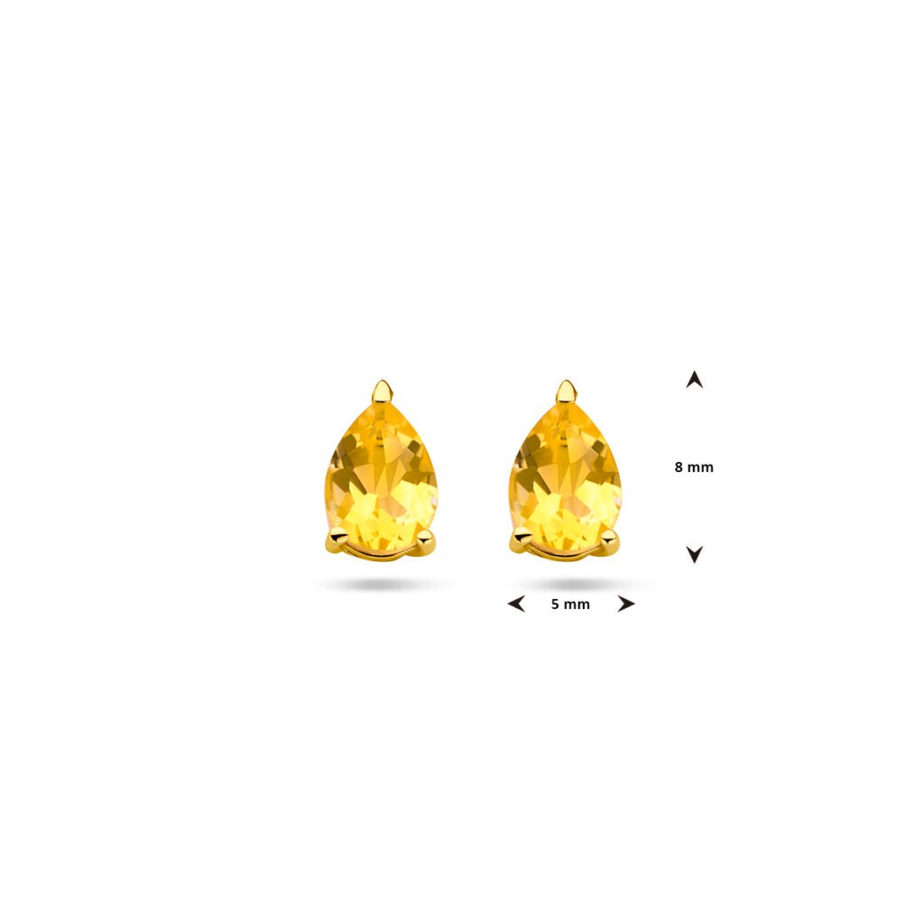 14k Geelgouden oorknoppen uitgevoerd met citrien. De oorknoppen hebben een afmeting van 8x5mm.