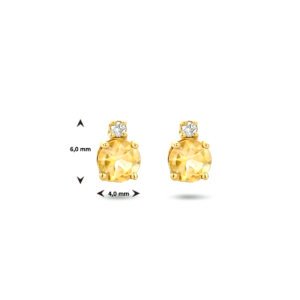 14k Geelgouden oorknoppen uitgevoerd met een schitterende citrien en diamant. De oorknoppen hebben een afmeting van 6x4mm.