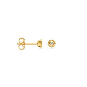14k Geelgouden oorknoppen uitgevoerd met diamant. De oorknoppen hebben een diameter van 4mm. Het totale diamantgewicht is 0.02ct.