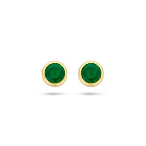14k Geelgouden oorknoppen uitgevoerd met schitterend groen agaat. De oorknoppen hebben een diameter van 4.5mm.