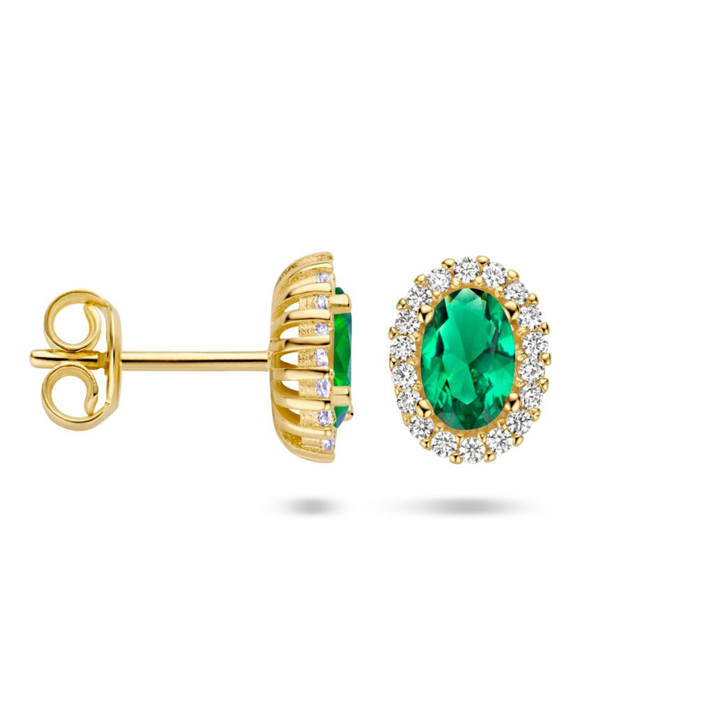 14k Geelgouden oorknoppen uitgevoerd met schitterende groene ziroknia. De oorknoppen hebben een afmeting van maat 8.5x7mm.