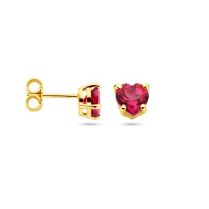 14k Geelgouden oorknoppen uitgevoerd met roze topaas hart. De oorknoppen hebben een afmeting van 6×6.5mm.