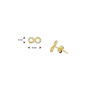 Geelgouden oorknoppen met een infinityteken en zirkonia.