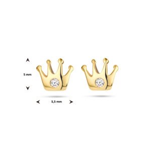 14k Geelgouden oorknoppen in de vorm van een kroon.