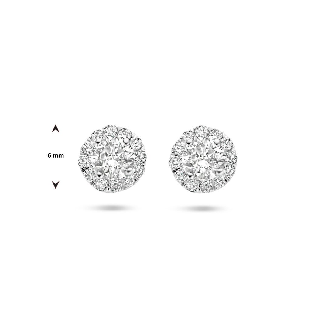 14k Witgoud met palladium legering oorknoppen. De oorknoppen zijn uitgevoerd met lab grown diamanten. Lab grown diamanten zijn diamanten die ontstaan in een laboratorium. Onder extreem hoge druk en temperatuur wordt het natuurlijk ontstaansproces nagebootst met als eindresultaat een diamant met dezelfde chemische eigenschappen maar met een andere oorsprong.