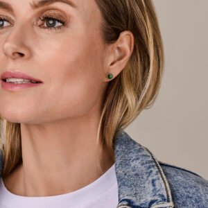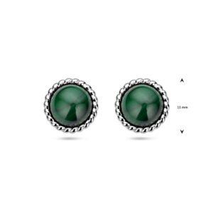 Gerhodineerd 925 zilveren oorknoppen uitgevoerd met malachiet. De oorknoppen hebben een diameter van 11mm.