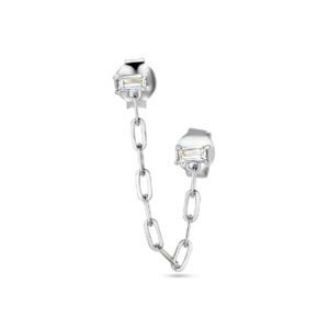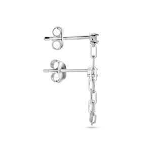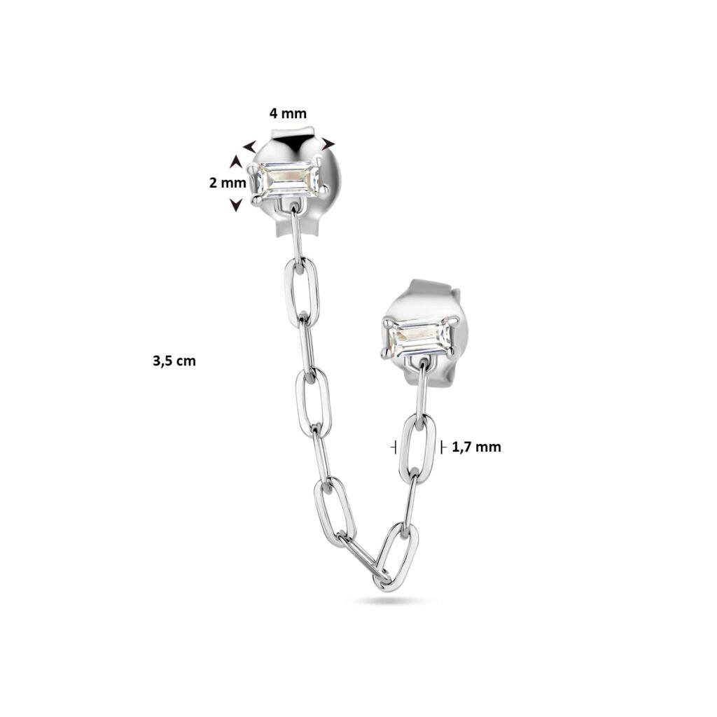 Gerhodineerd 925 zilveren oorknop uitgevoerd met zirkonia. De oorknop heeft een totale lengte van 3.5cm en een schakelbreedte van 1.7mm. De oorknop wordt per stuk verkocht.