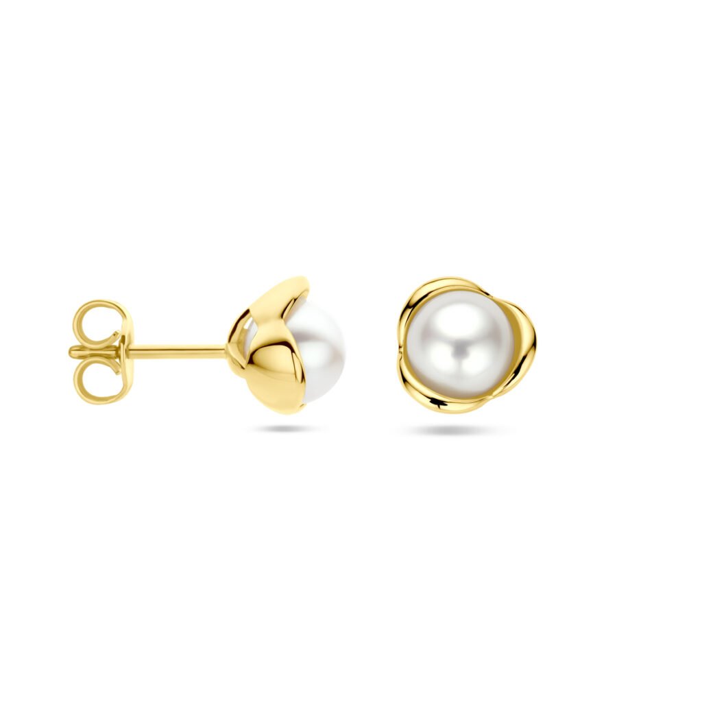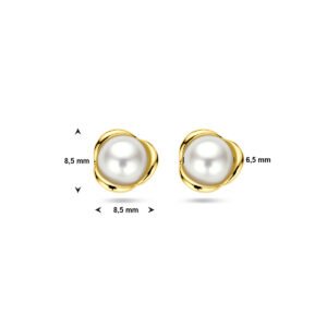 14k Geelgouden oorknoppen uitgevoerd met zoetwaterparel. De oorknoppen hebben een afmeting van 8.5×8.5mm.