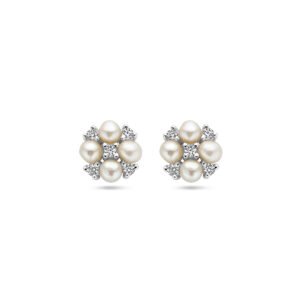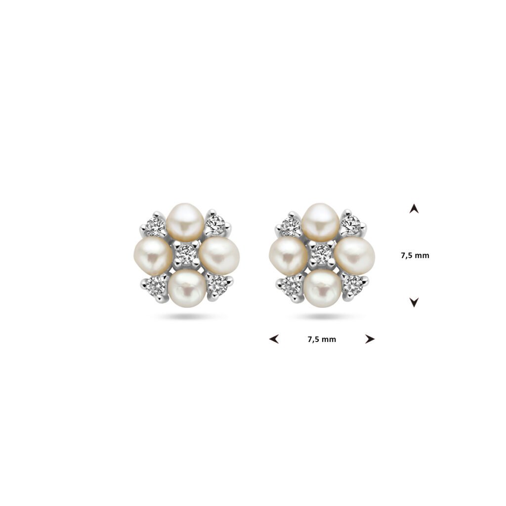 Gerhodineerd 925 zilveren oorknoppen uitgevoerd met zoetwaterparels en zirkonia. De oorknoppen hebben een afmeting van 7.5×7.5mm.