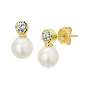 Klassieke Zirkonia Gouden Oorknoppen met Zoetwaterparel