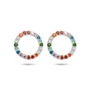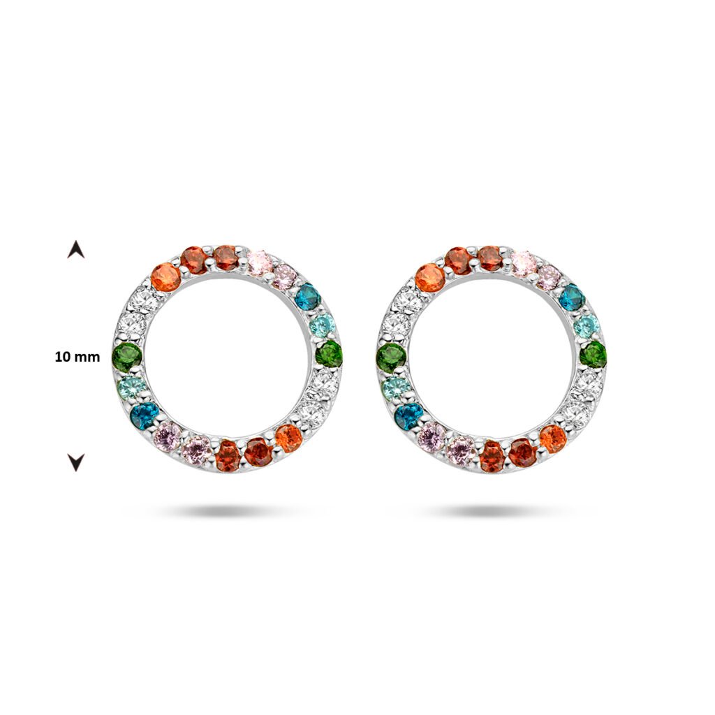 Gerhodineerd 925 zilveren oorknoppen in de vorm van een rondje. Uitgevoerd met een gekleurde zirkonia rij. De oorknoppen hebben een diameter van 10mm.