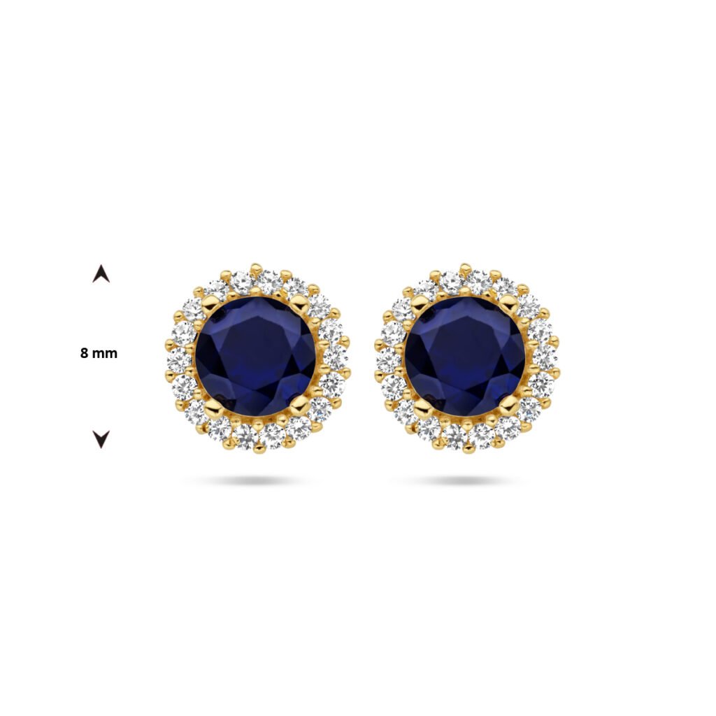 oorknoppen saffier zirkonia halo