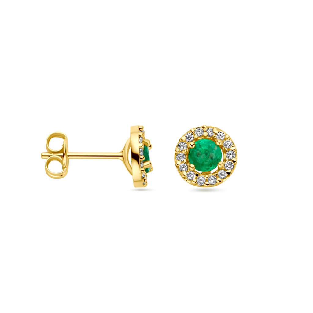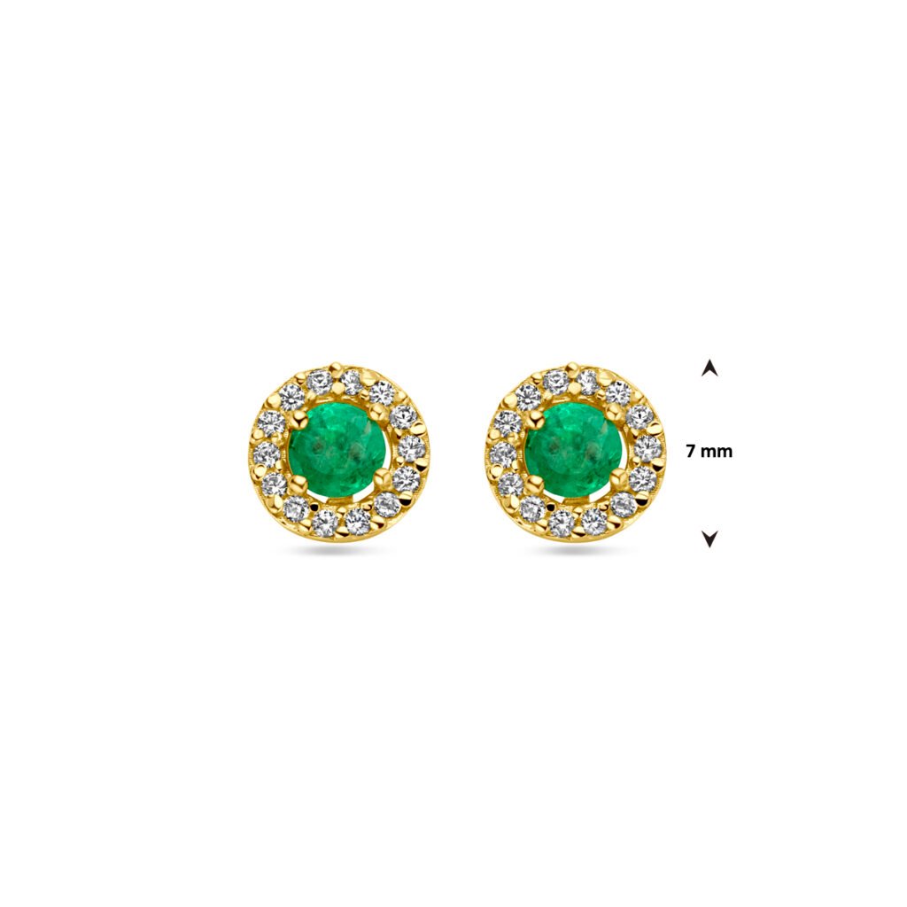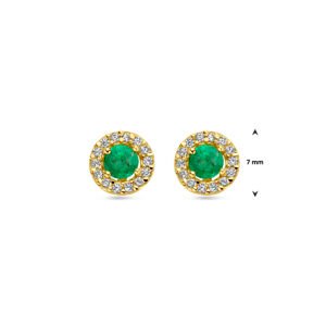 14k Geelgouden oorknoppen uitgevoerd met smaragd en zirkonia. De oorknoppen hebben een diameter van 7mm.
