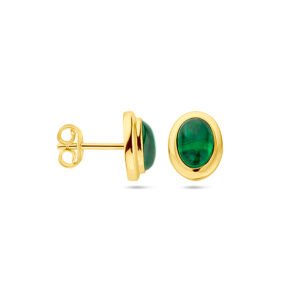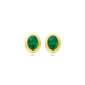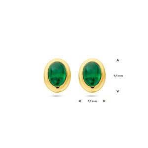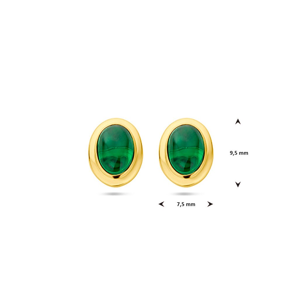 14k Geelgouden oorknoppen uitgevoerd met synthetisch smaragd. De oorknoppen hebben een afmeting van 9.5x7mm.