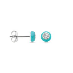Gerhodineerd 925 zilveren oorknoppen uitgevoerd met turquoise emaille en zirkonia. De oorknoppen hebben een diameter van 5,5mm.