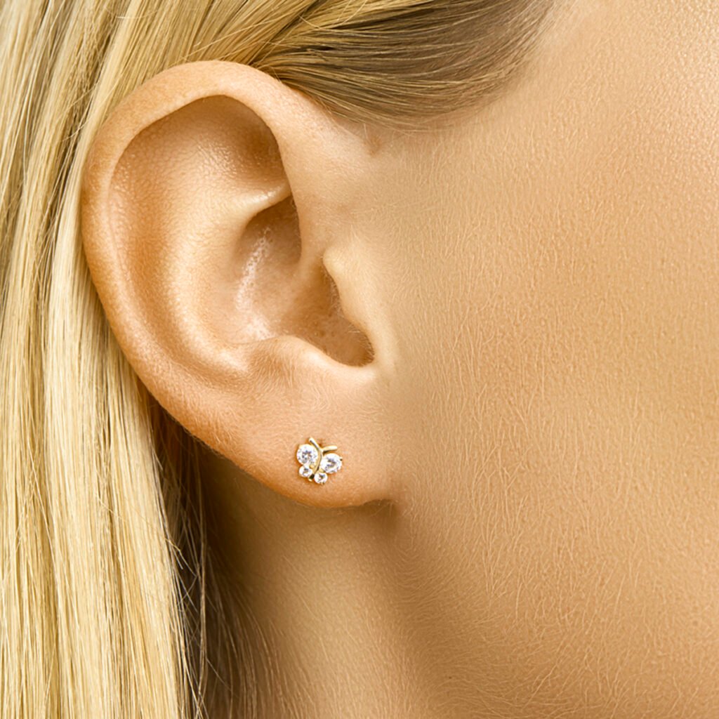 Geelgouden oorknoppen met een vlinder en zirkonia.
