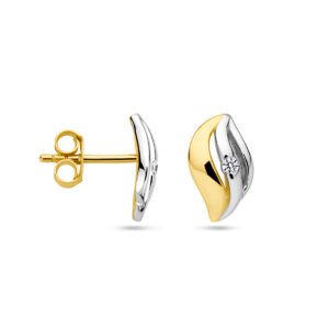 925 Zilveren oorstekers, deels gerhodineerd en deels met 1 micron geelgoud plating. De oorstekers zijn uitgevoerd met zirkonia. Geen garantie op plating.