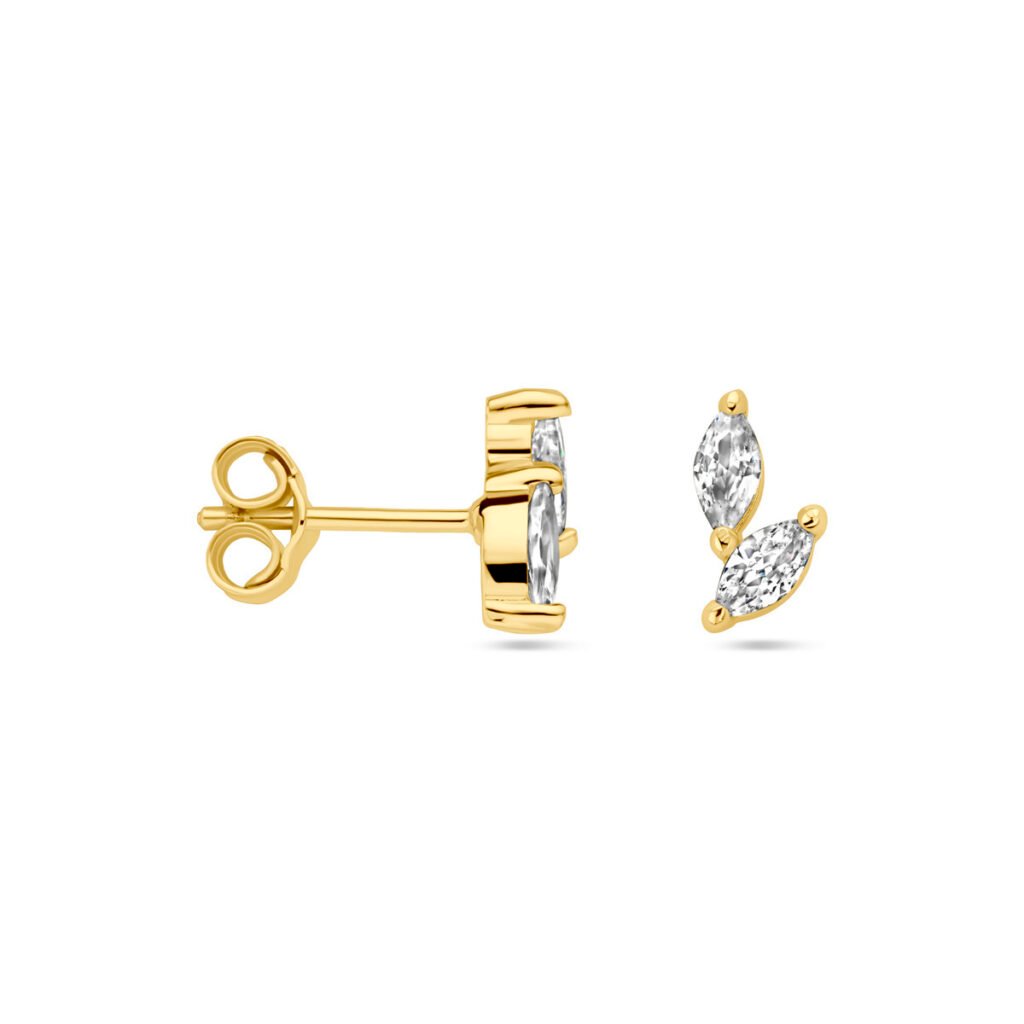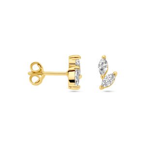 Geelgoud op 925 zilveren oorknoppen uitgevoerd met zirkonia. De oorknoppen hebben een afmeting van 9x5mm. Geen garantie op plating.