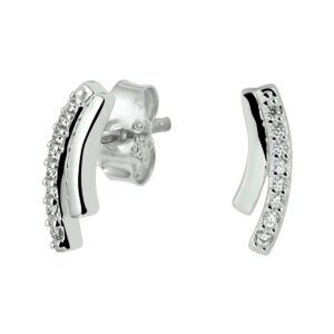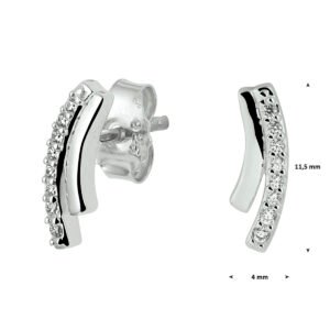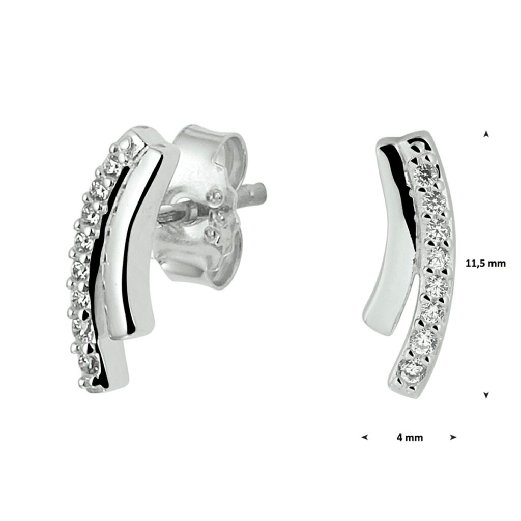Gerhodineerd zilveren oorknoppen uitgevoerd met een rij van heldere zirkonia. Info: Gerhodineerd zilver is door de rhodiumlaag beter bestand tegen verkleuren en krassen.
