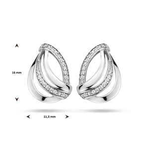 Gerhodineerd 925 zilveren oorknoppen uitgevoerd met schitterende zirkonia. De oorknoppen hebben een afmeting van 16×11.3mm.