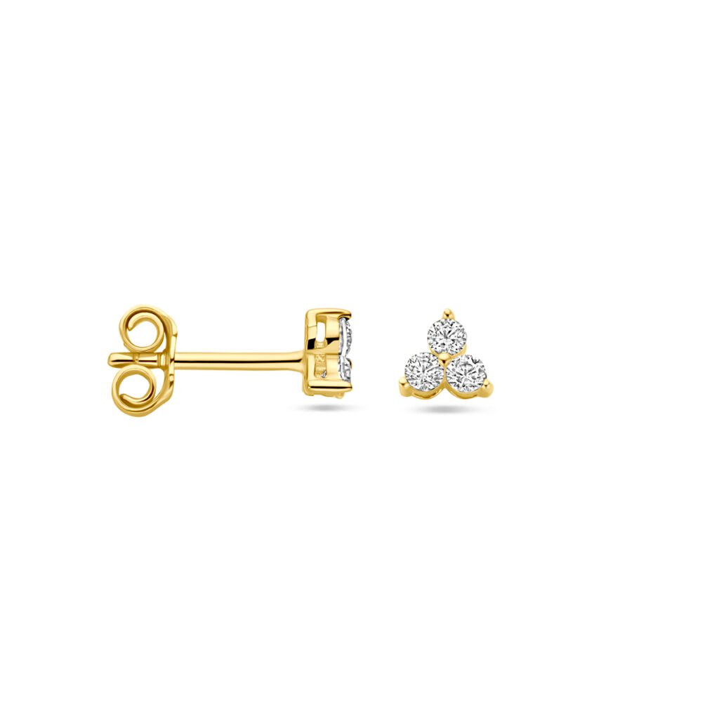 14k Geelgouden oorknoppen uitgevoerd met zirkonia. De oorknoppen hebben een afmeting van 4.5x5mm.