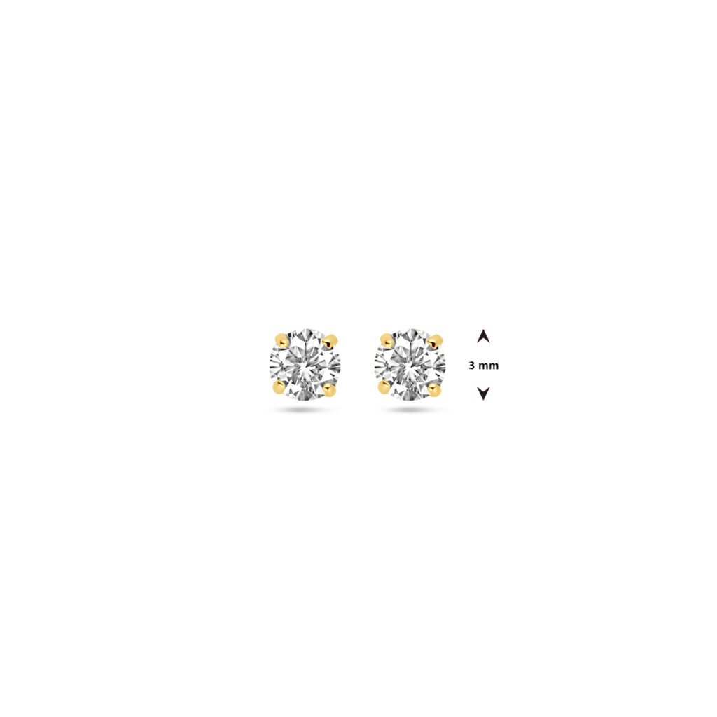 Geelgouden oorknoppen met zirkonia.