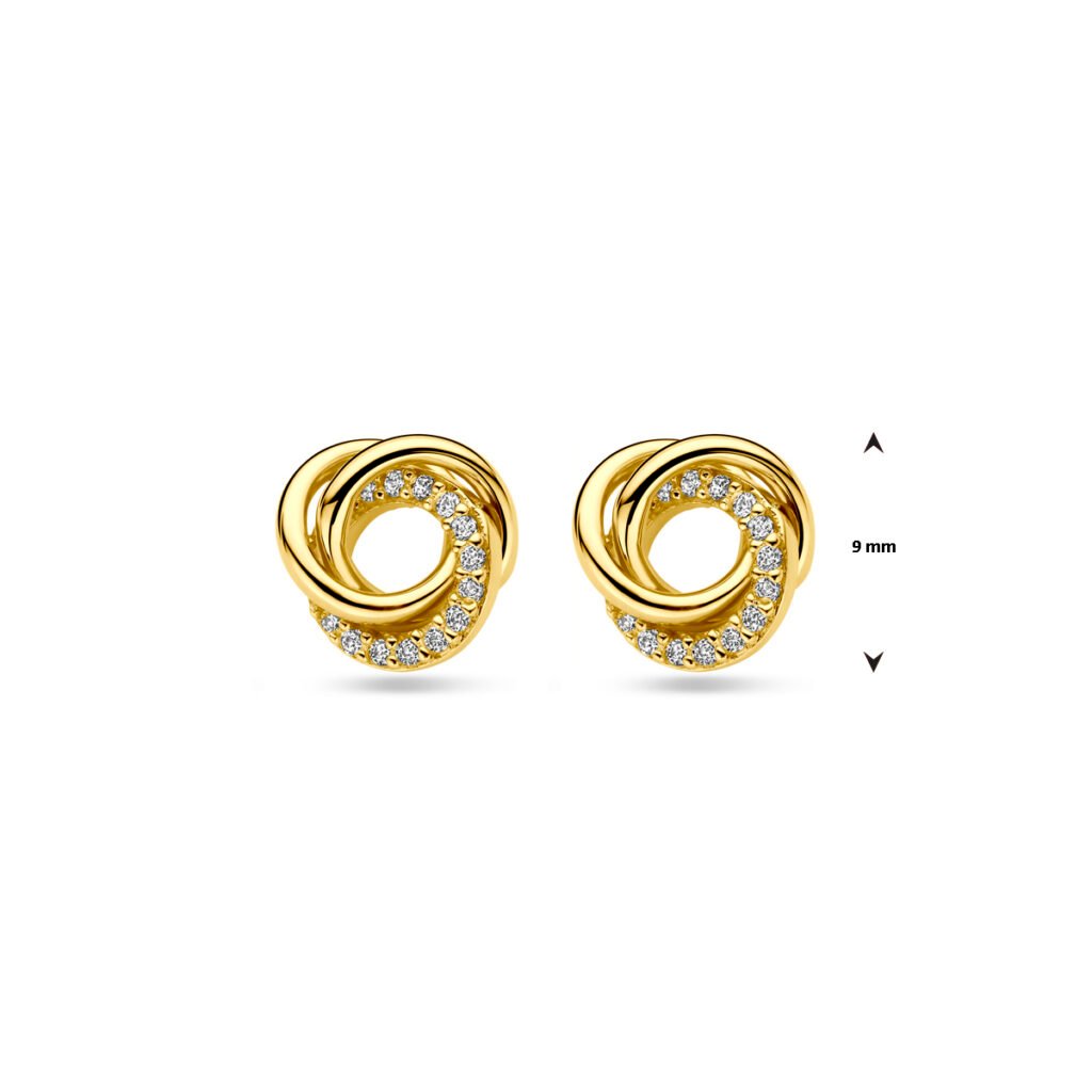 14k Geelgouden oorknoppen uitgevoerd met zirkonia. De oorknoppen hebben een diameter van 9mm.