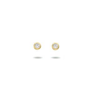 14k Geelgouden oorknoppen uitgevoerd met een schitterende zirkonia. De oorknoppen hebben een diameter van 2mm.