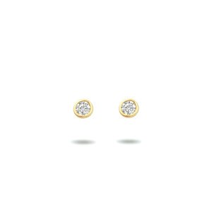 14k Geelgouden oorknoppen uitgevoerd met een heldere zirkonia. De oorknoppen hebben een diameter van 2.5mm.