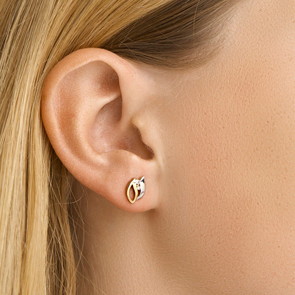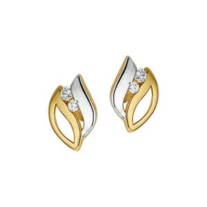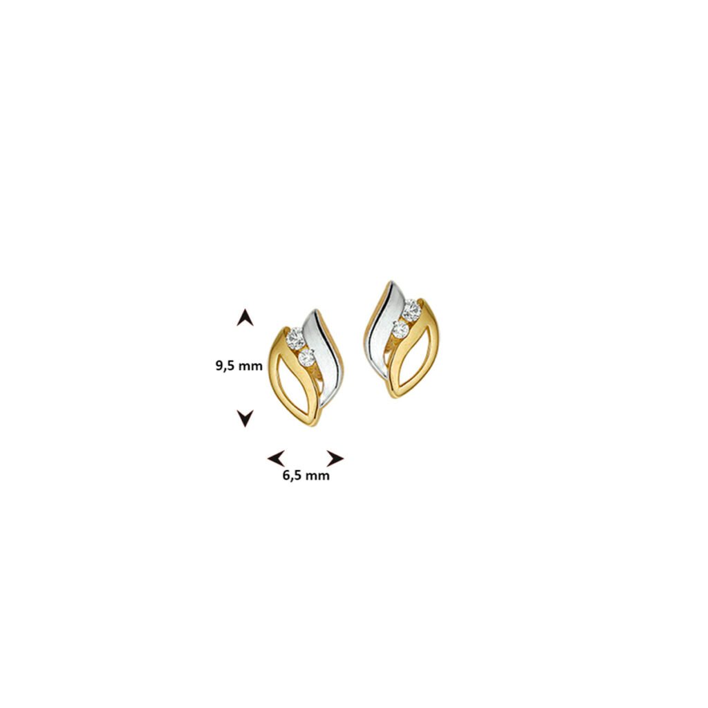 Bicolor wit- en geelgouden oorknoppen met zirkonia.