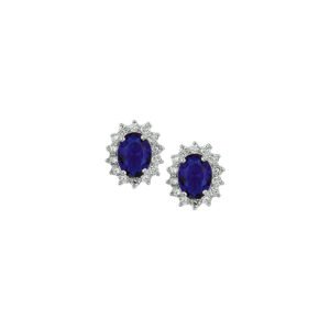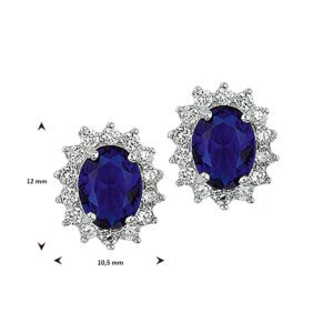 Gerhodineerd zilveren oorknoppen met zirkonia en synthetische saffier.