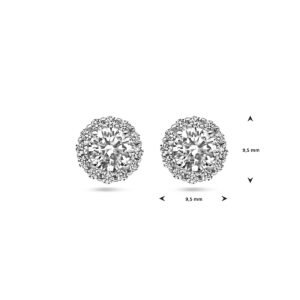 Gerhodineerd 925 zilveren oorknoppen uitgevoerd met zirkonia. De oorknoppen hebben een diameter van 9.5mm.