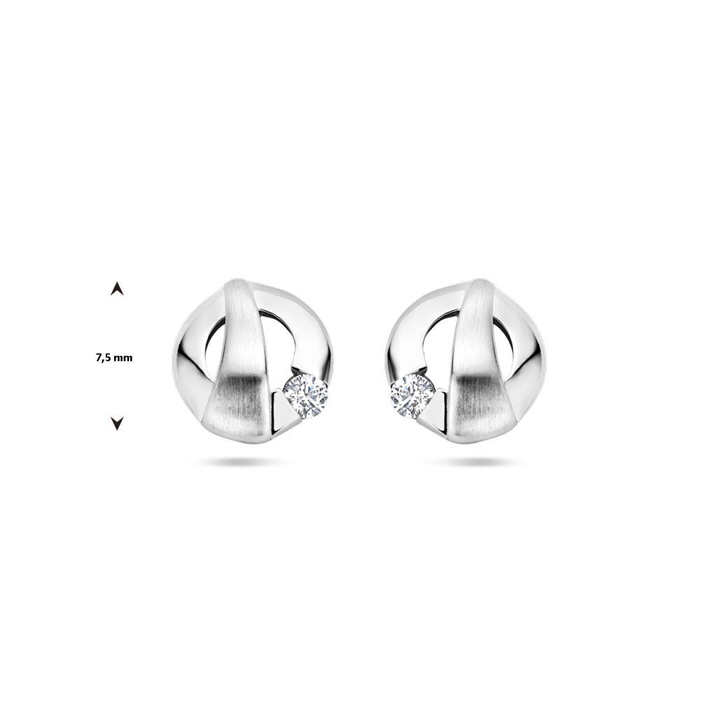 Gerhodineerd 925 zilveren oorknoppen uitgevoerd met zirkonia. De oorknoppen hebben een diameter van 7.5mm.