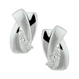 Gerhodineerd zilveren oorknoppen met zirkonia en een poli/matte afwerking. De oorknoppen zijn onderdeel van een set.