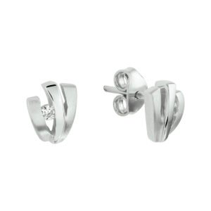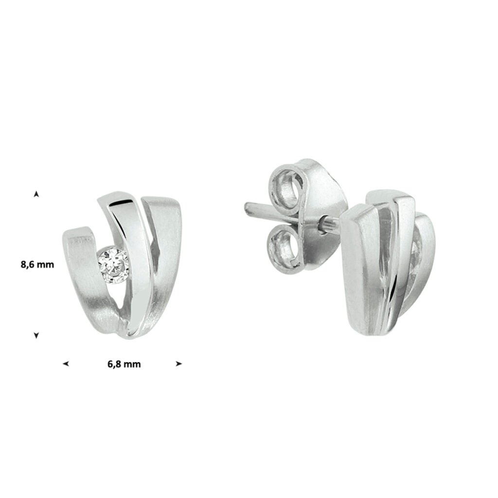 Gerhodineerd zilveren oorknoppen met een poli/matte afwerking en zirkonia. De oorknoppen zijn onderdeel van een set.