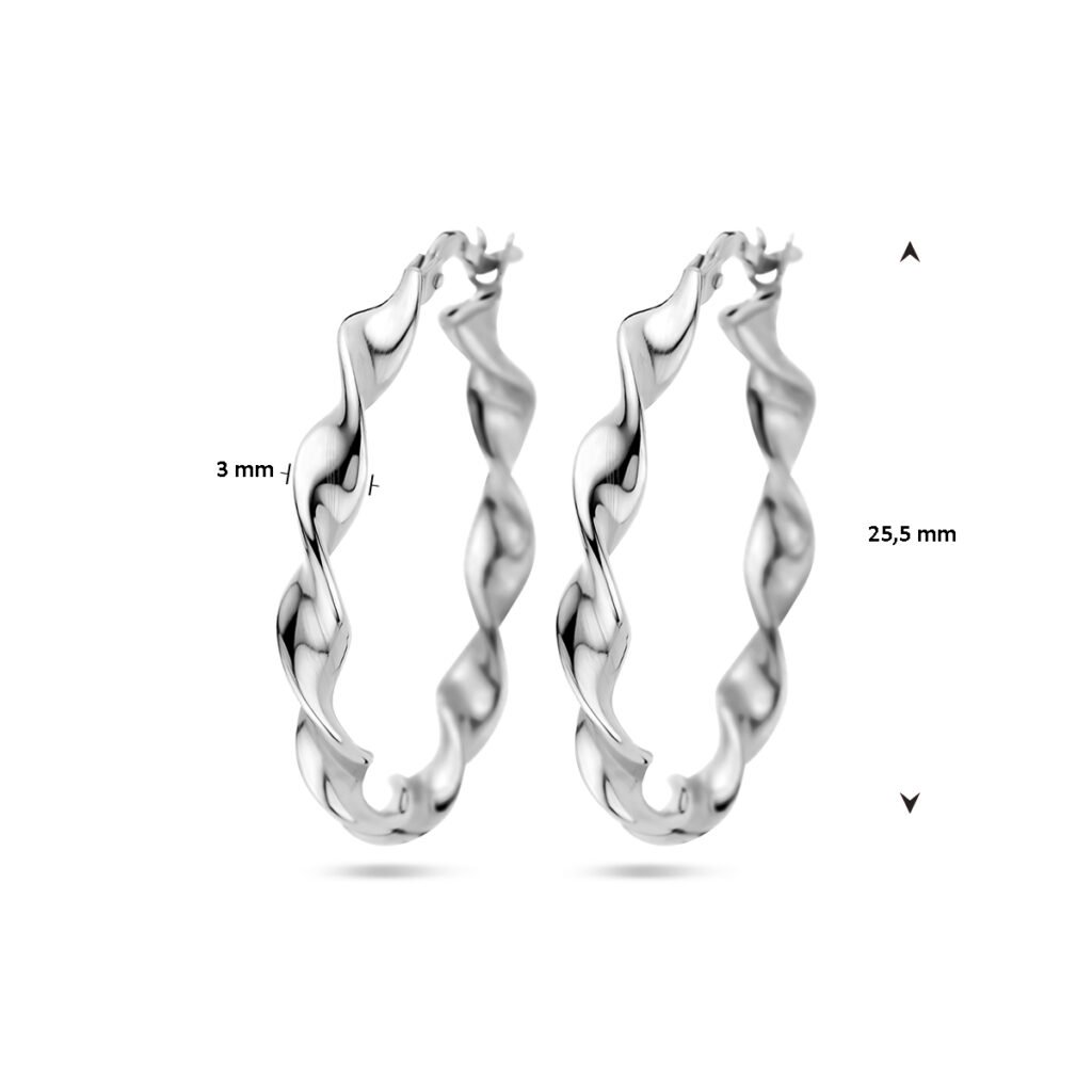Gerhodineerd 925 zilveren oorringen. De oorringen hebben een diameter van 25.5mm.