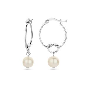 Gerhodineerd 925 zilveren oorringen uitgevoerd met parel. De oorringen hebben een totale hoogte van 34mm.