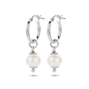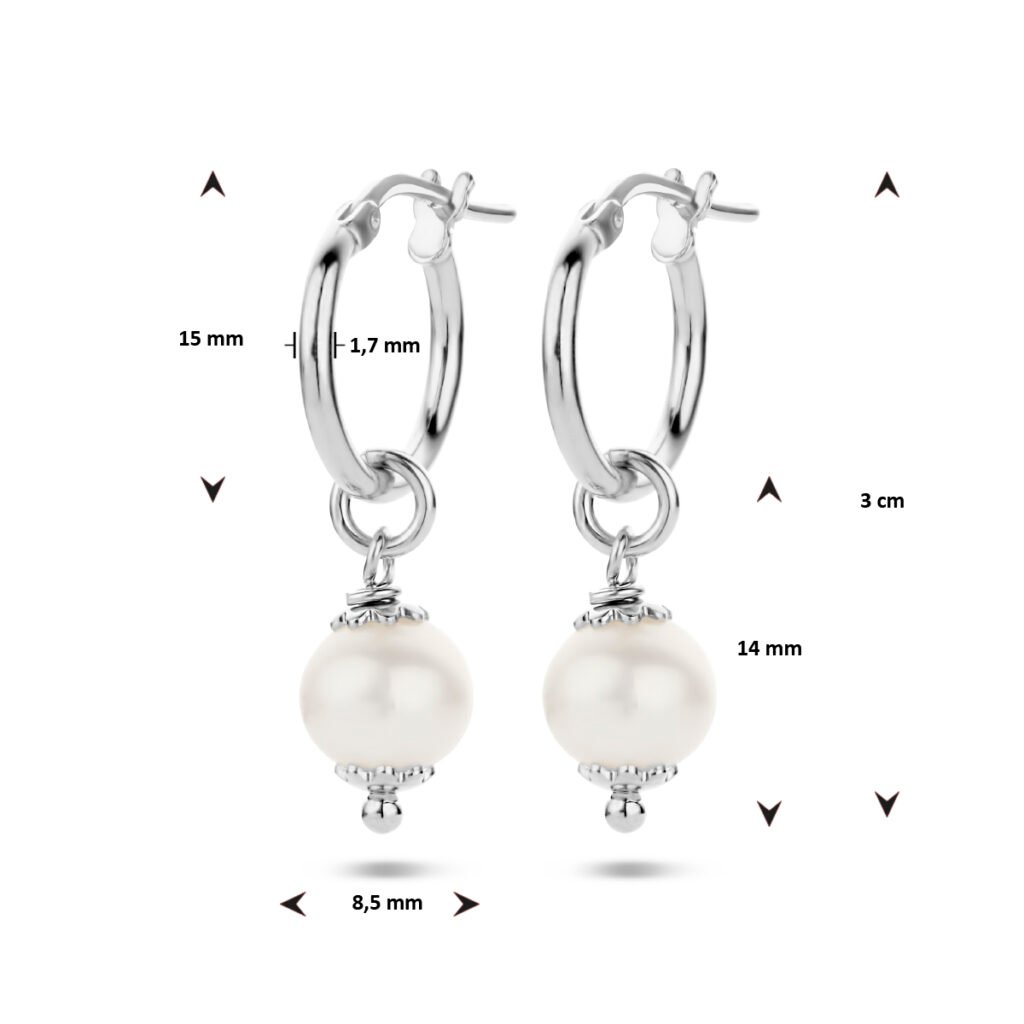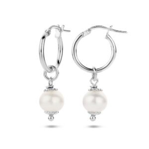 Gerhodineerd 925 zilveren oorringen uitgevoerd met een zoetwaterparel van 8.5mm. De oorringen hebben een diameter van 15mm.