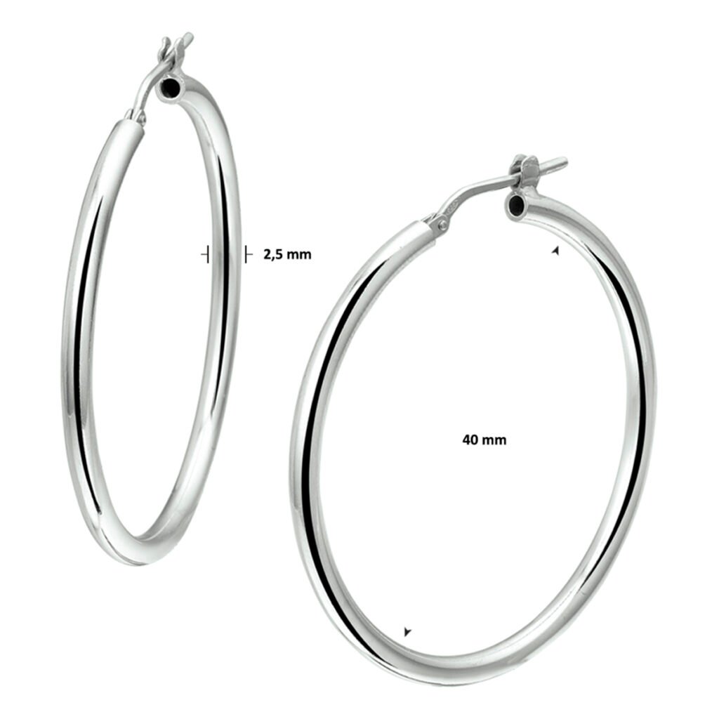 Gerhodineerd zilveren oorringen met een ronde buis en een hefboom-sluiting.
