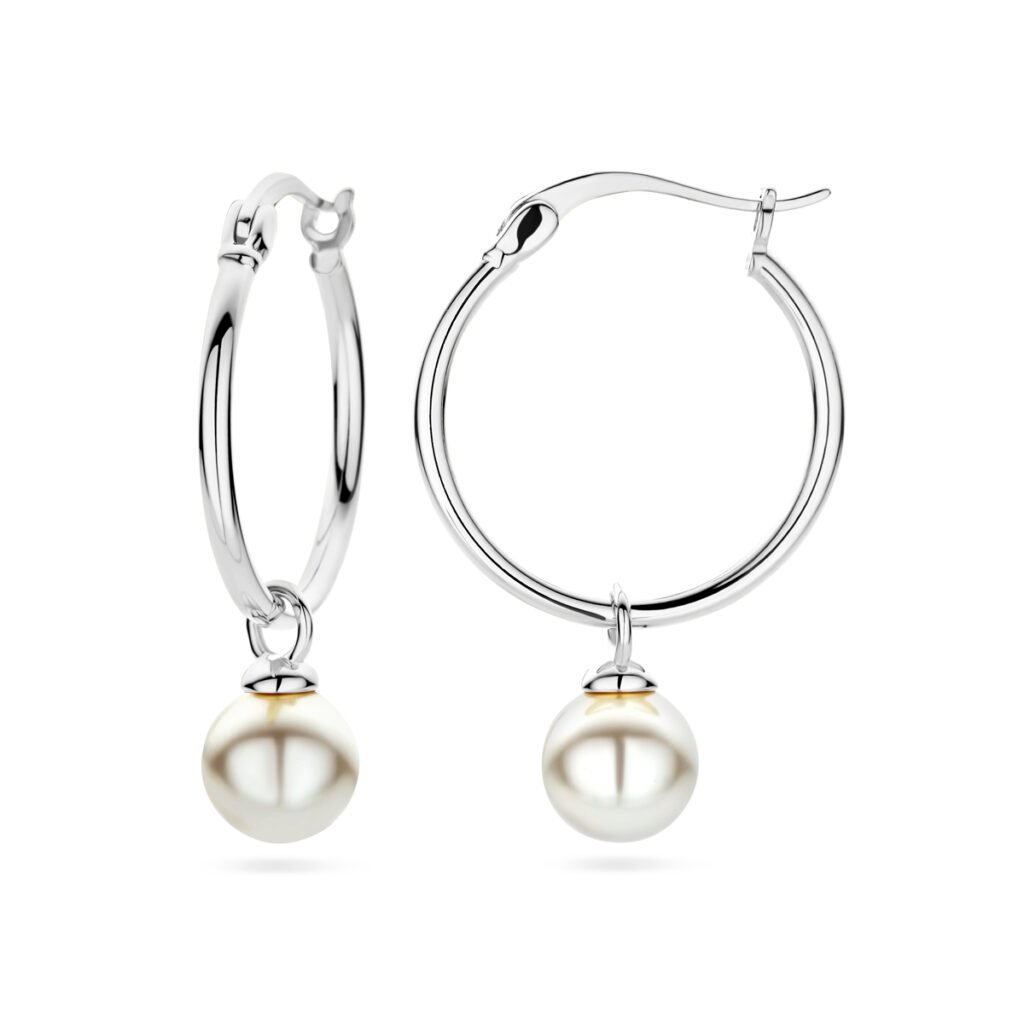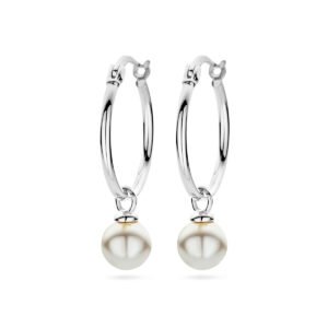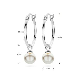 Gerhodineerd 925 zilveren oorringen uitgevoerd met synthetische parel. De oorringen hebben een totale hoogte van 30mm.