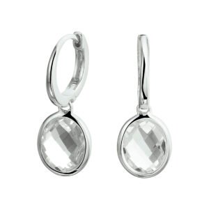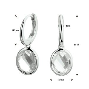 Chique gerhodineerd zilveren oorringen uitgevoerd met schitterende wit topaas hangers en een stevige scharnier sluiting. De klapoorringen hebben een totale hoogte van 2.6cm en de hanger heeft een afmeting van 14.5x10mm.