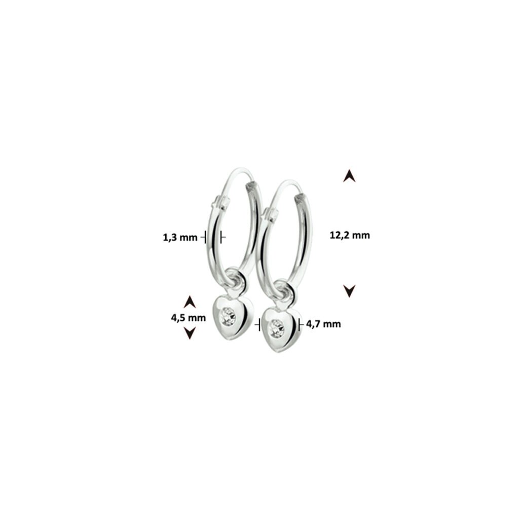 Creolen met Strass Hart Hanger van Zilver