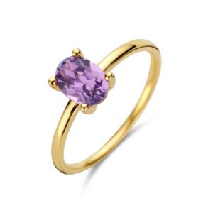 14k Geelgouden ring uitgevoerd met schitterende amethist.