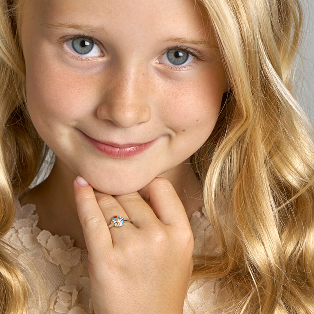 Gerhodineerd zilveren cupcake ring uitgevoerd met een kleurrijke emaille afwerking. De ring is er in verschillende maten en heeft een breedte van 9mm. U kunt deze ring combineren met bijpassende sieraden uit onze collectie.