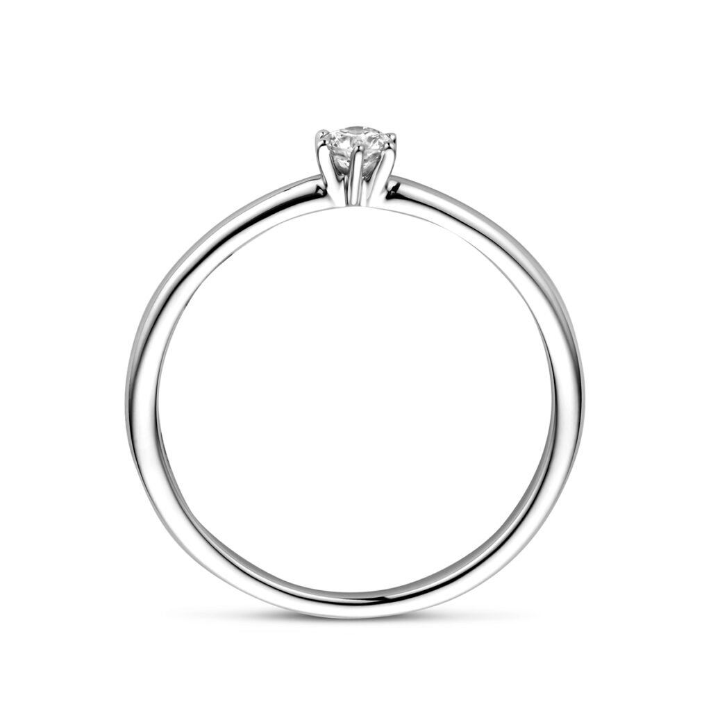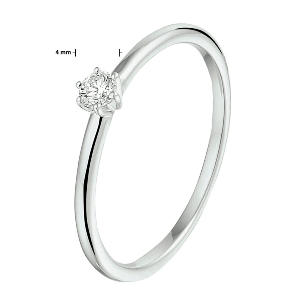 14k witgouden ring uitgevoerd met een schitterende diamant. De breedte van de ring is 4mm.