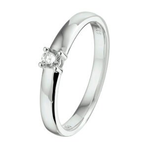 14k Witgouden ring uitgevoerd met een schitterende diamant. De ring heeft een breedte van 3mm.